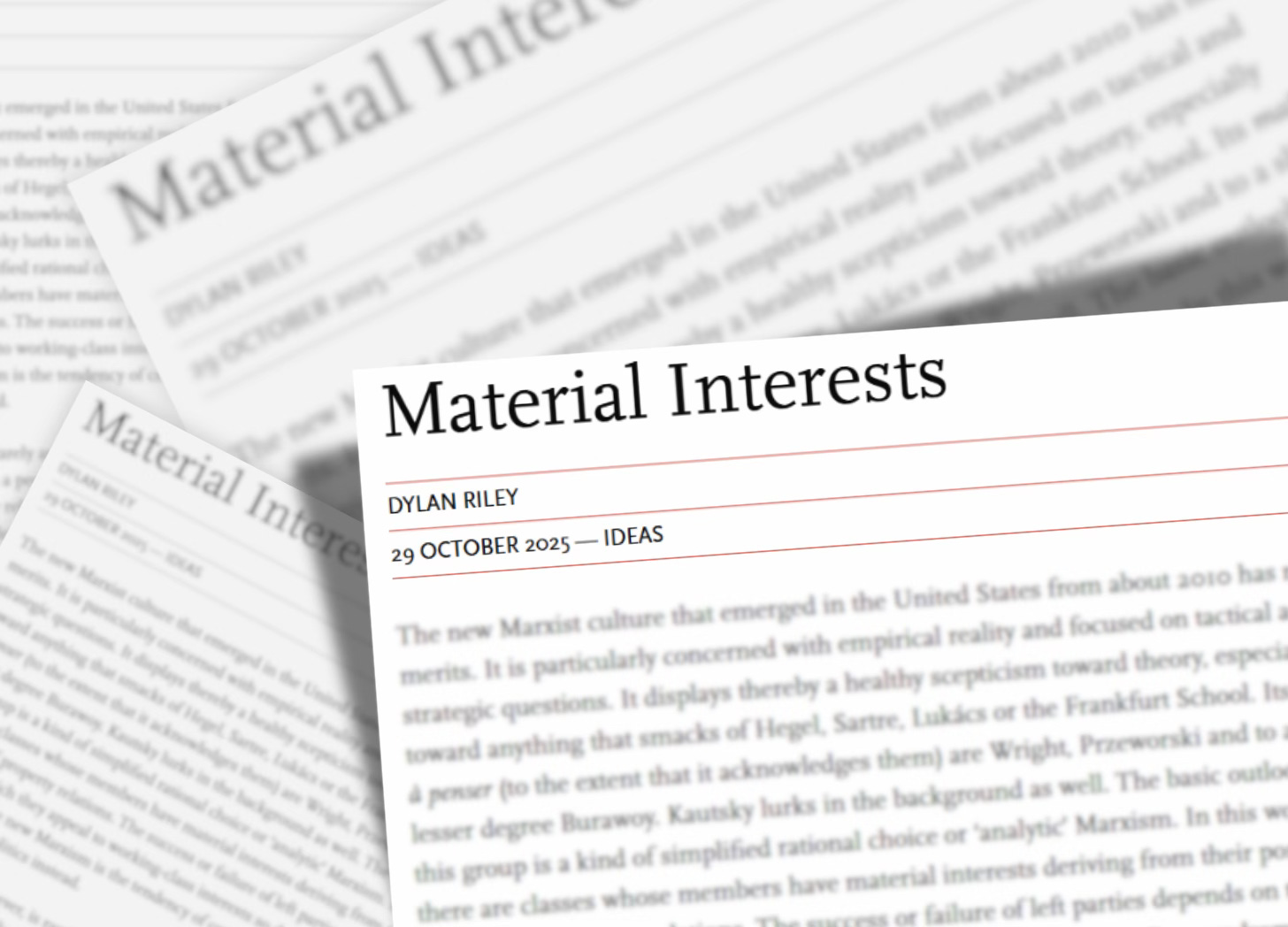 So, Riley’s criticism of “the new Marxist culture” misfires on both counts. The notion of material interests is an essential foundation for socialist political practice — and for beginning to imagine alternatives to capitalism, which is in turn necessary to orienting class struggle in an emancipatory direction.