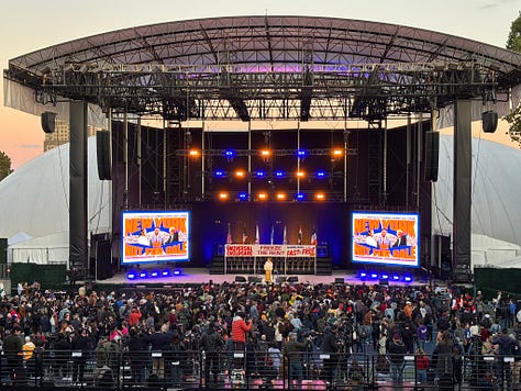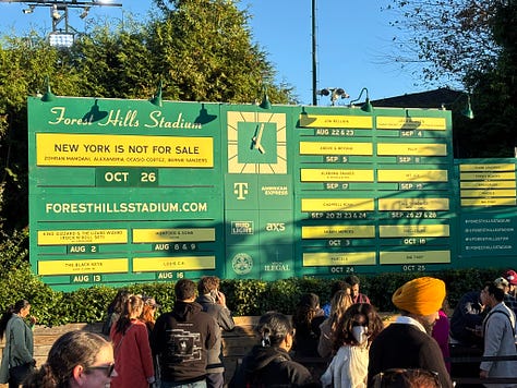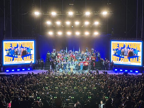 Neal: There were multiple points where people broke out chanting “Tax the Rich,” and I think you and I got pretty into it. The people around us were really into it. I was thinking about it too from the point of view of the people who were sitting near us. From talking to them, my sense was that a lot of them were not ideologically committed lefties. These were nice Democrats who were interested in the mayor’s race and thought Zohran was really cool, and they really liked what he stands for. Some of them had Kamala Harris buttons on.